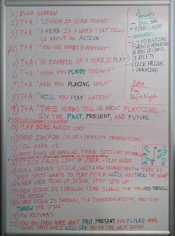 Over the course of two days we designed and built an educational VR app in Unity to help elementary students learn verb tenses in an immersive story based environment. We won Best Use of VR Tech for Education at the 2016 Foundry10 Educational VR Hackathon with this project.