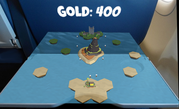 IslandAR is an augmented reality take on the classic tower defense style video game. In this case, a player defends an island, holding their recently discovered treasure, from various ships trying to steal it away from them. The player, while setting up the app in Hololens, attaches the play space to the seat back tray table. Players can set up cannon defenses against these foes around the map while also being able to use their point of view as a "free roam" cannon. Each time an enemy ship reaches the island, the player loses a bit of gold. The game ends when the player is out of gold.