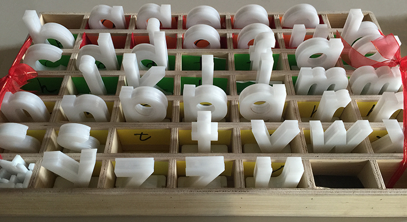 Assisted with the design and fabrication of a tangible, multi-Sensory reading learning system for children with dyslexia. The project involved the creation of translucent three dimensional physical letters with circuitry and a registration system for lighting programmable RGB LED strips within the letters to respond to a user actions.